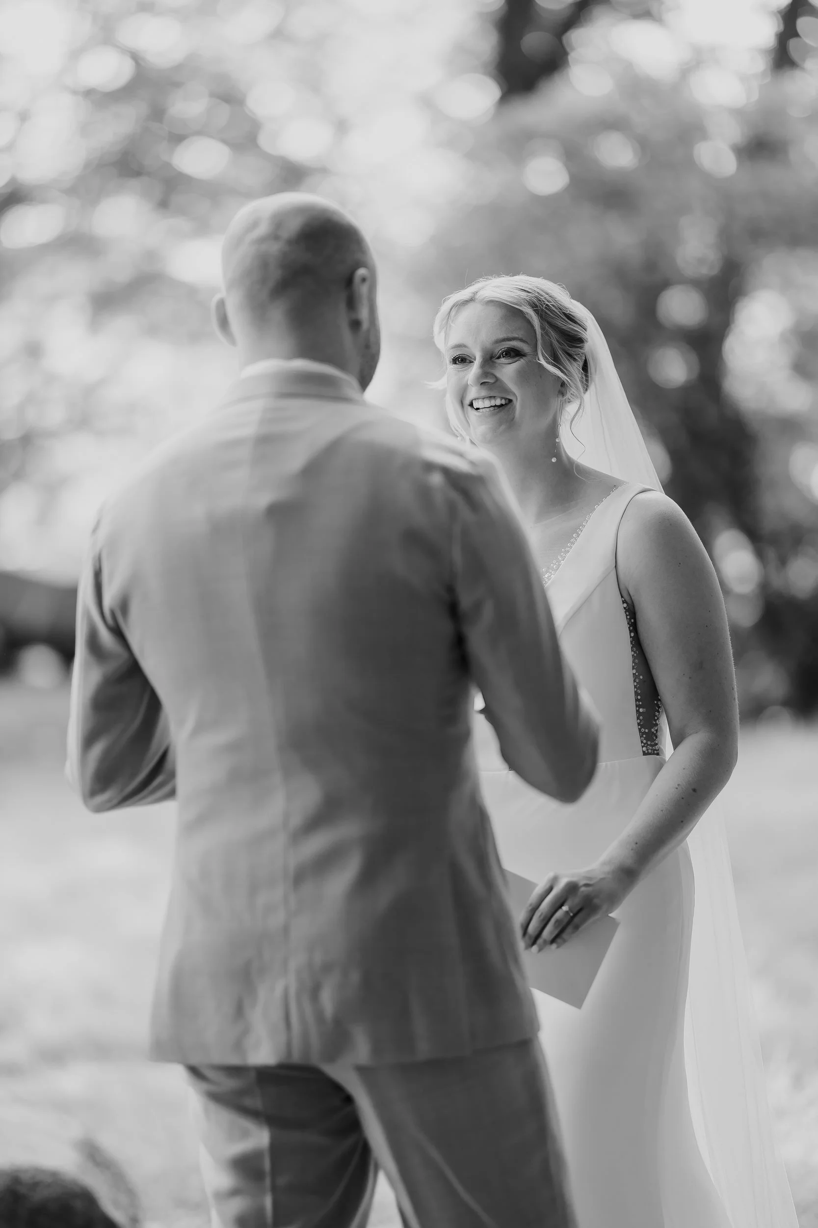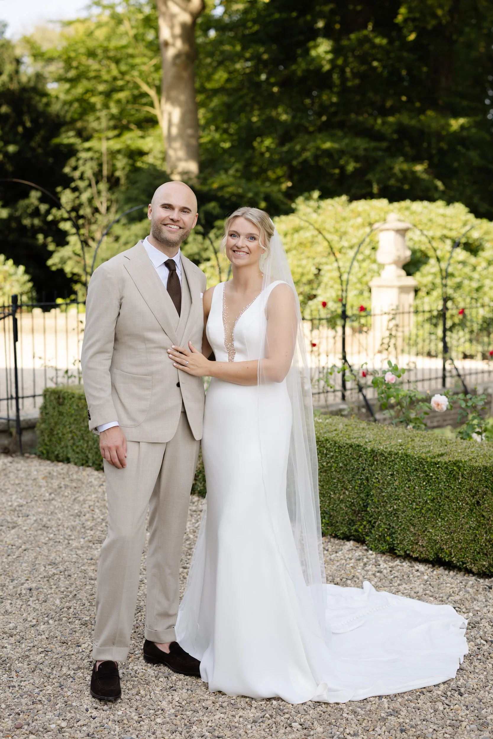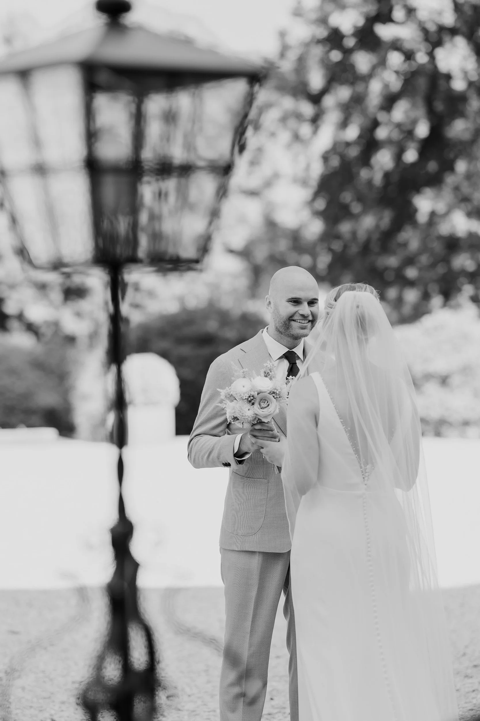 De first look was op de achtertrap van Rhederoord. Daarna maakten we een wandeling over het landgoed voor de fotoshoot. Tijdens die wandeling spraken ze hun geloftes persoonlijk naar elkaar uit. Gewoon met z’n tweeën. Onderweg. Mooi en puur.