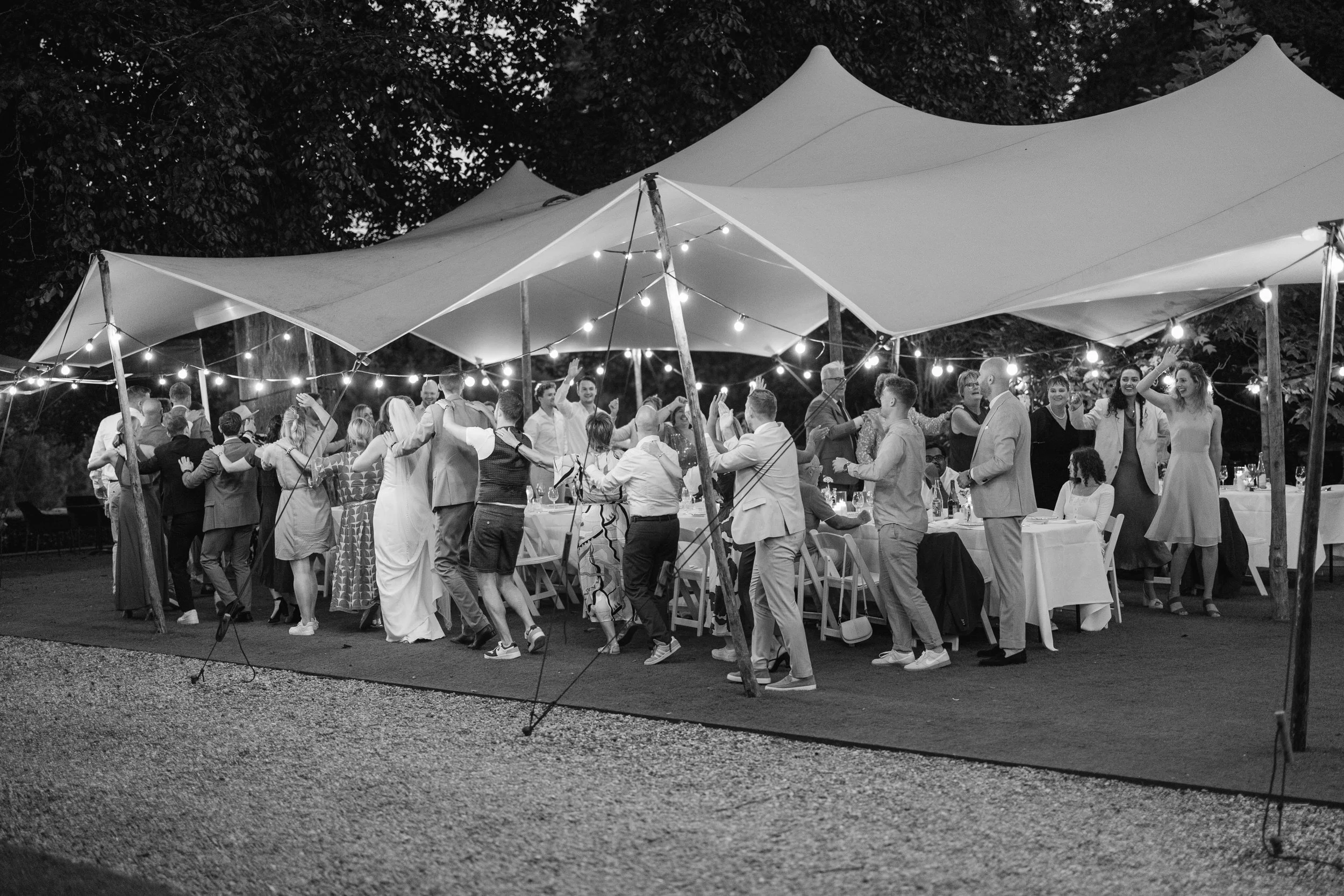 Na een gezellig buitendiner vol speeches, met de ondergaande zon erbij, volgde de openingsdans.