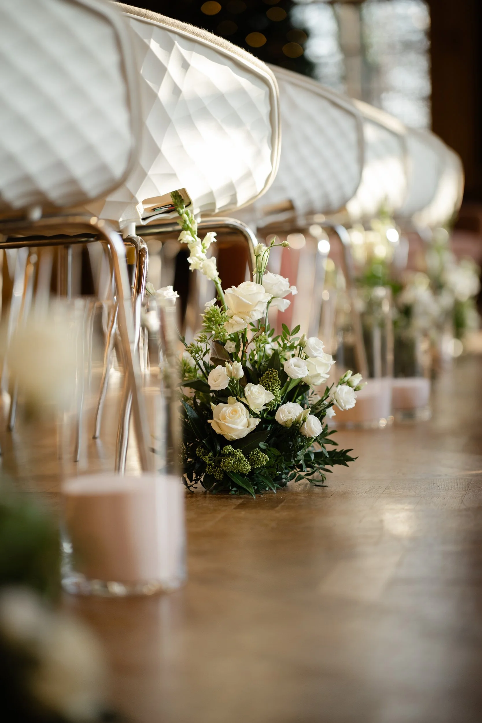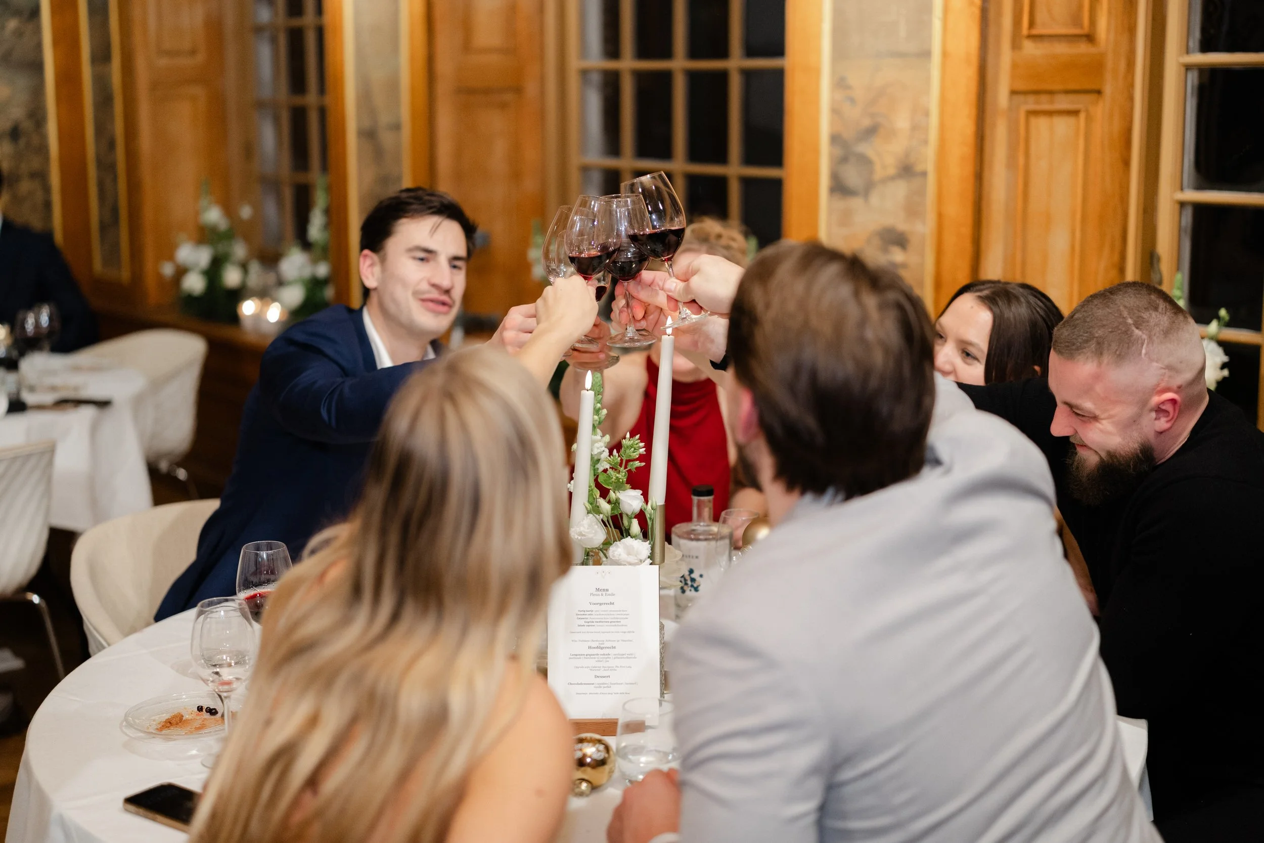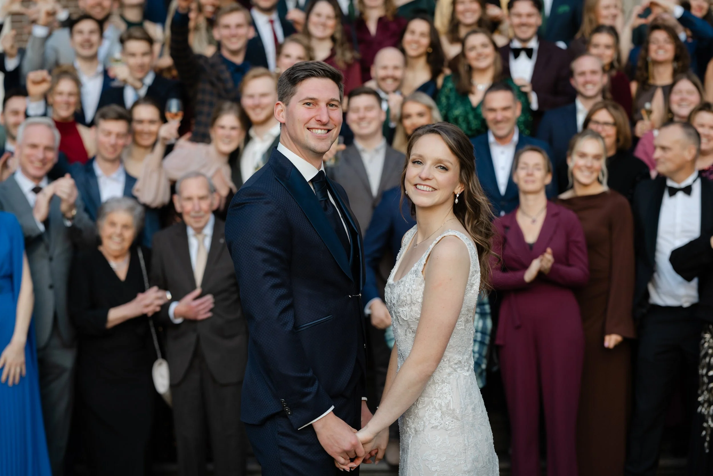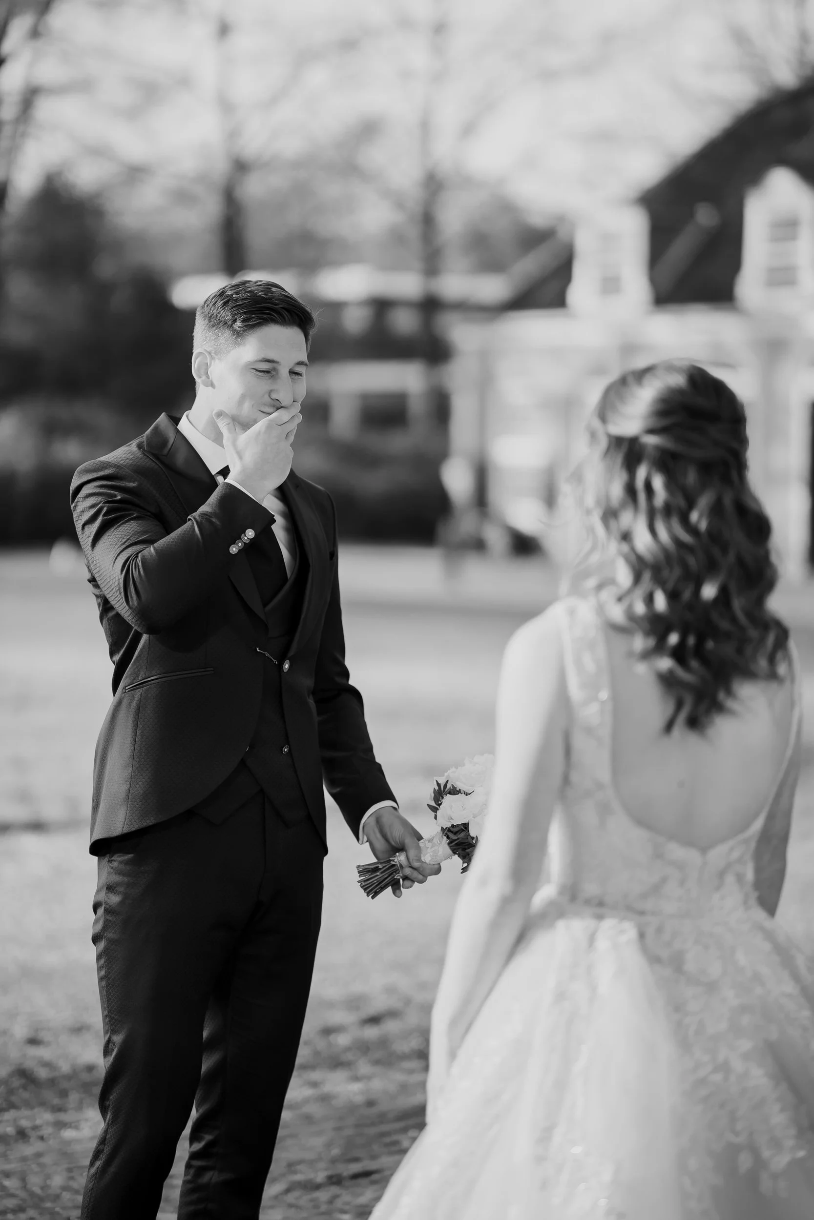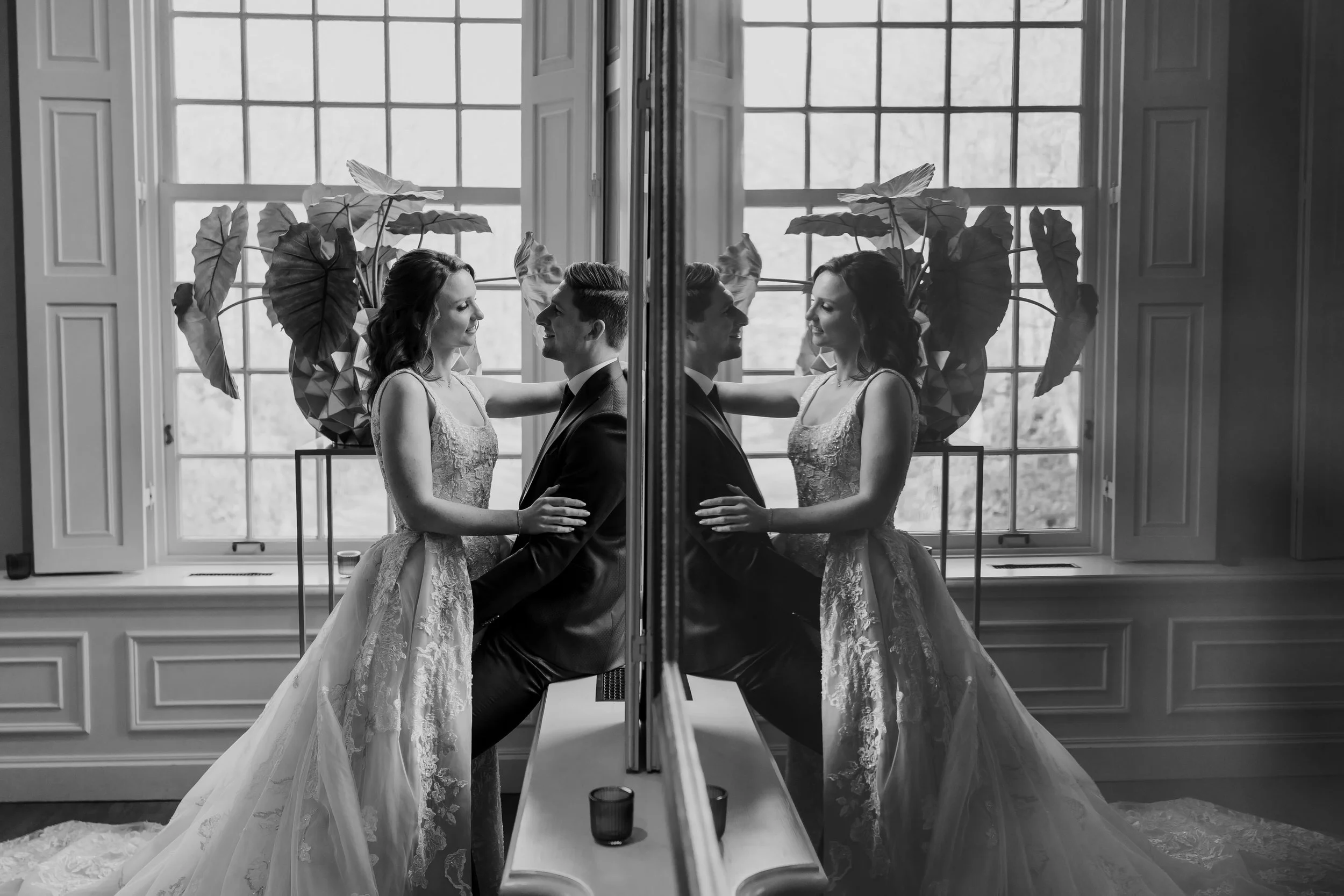 We begonnen de ochtend bij Emile met zijn get ready, Pleun volgde kort daarna en was boven al bezig met de visagie. Rond het middaguur was het tijd voor de first look, buiten op de trap. Zo’n moment blijft bijzonder, even alleen samen, voordat alles losbarst. Daarna deden we meteen een korte fotoshoot op en rondom de locatie. Met simpele directie en prompts hebben we echt een knaller van een shoot neergezet.