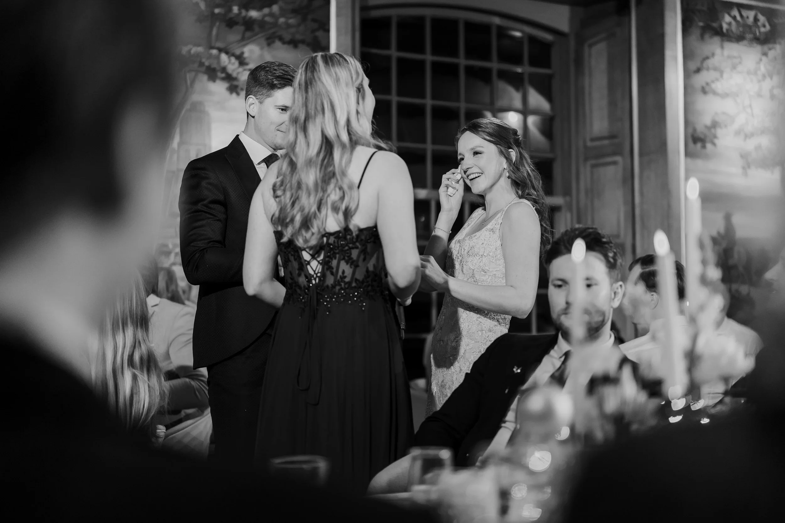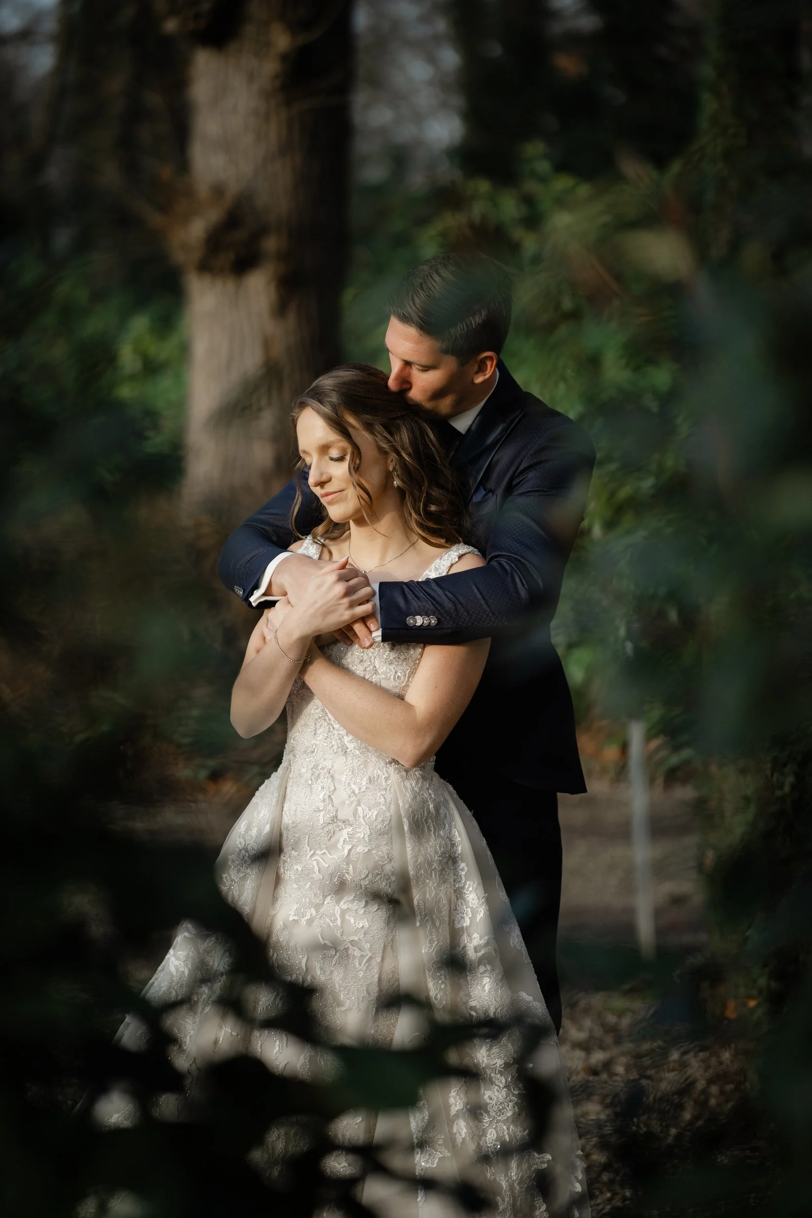 Na de familie- en groepsfoto’s werd de dag vervolgd met een diner waarbij Pleun & Emile tussen de gangen van tafel wisselden. Zo hadden ze met iedereen even persoonlijk contact, iets wat ik steeds vaker zie en wat echt werkt. Later op de avond openden ze het feest met hun openingsdans, waarna het losging op de dansvloer. Ik sloot af met een laatste foto buiten en, uiteraard, een dikke knuffel.