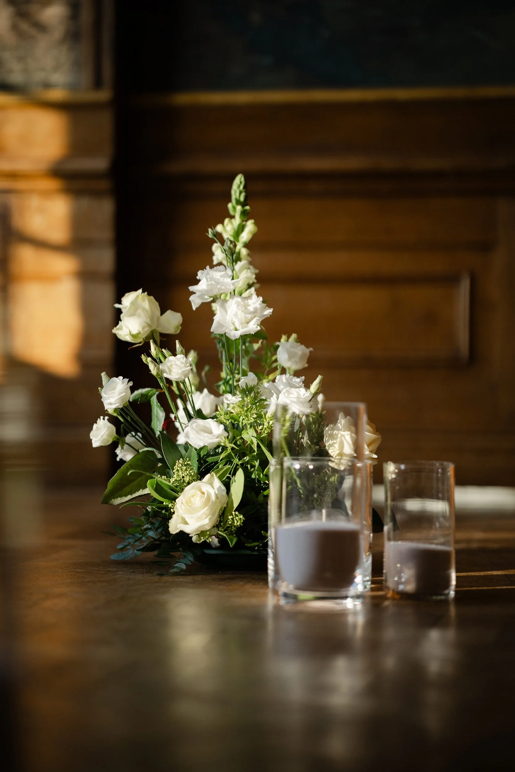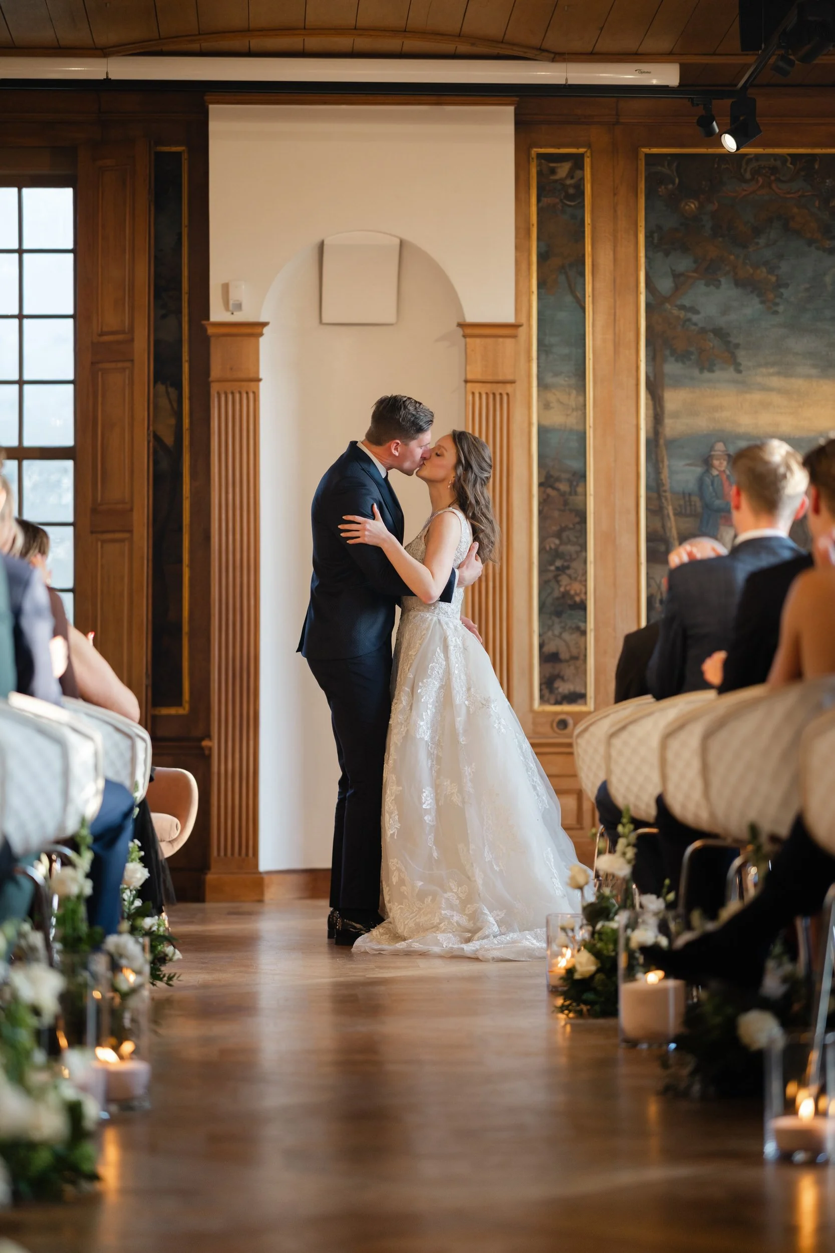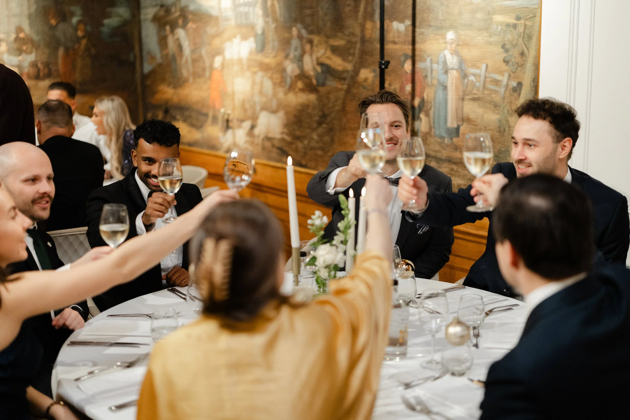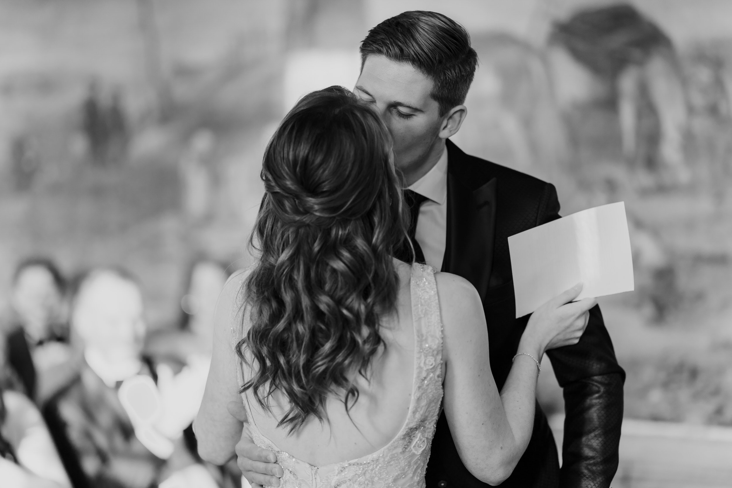 De ceremonie vond plaats in de Raadzaal. Emile kwam binnen met zijn moeder, Pleun met haar vader. Daarna volgden persoonlijke geloften, een kusmoment en samen weer naar buiten. Aansluitend trokken ze zich even terug en maakten ze hun entree voor taart en toast, met de moeders die het proostmoment openden. Super leuk moment.